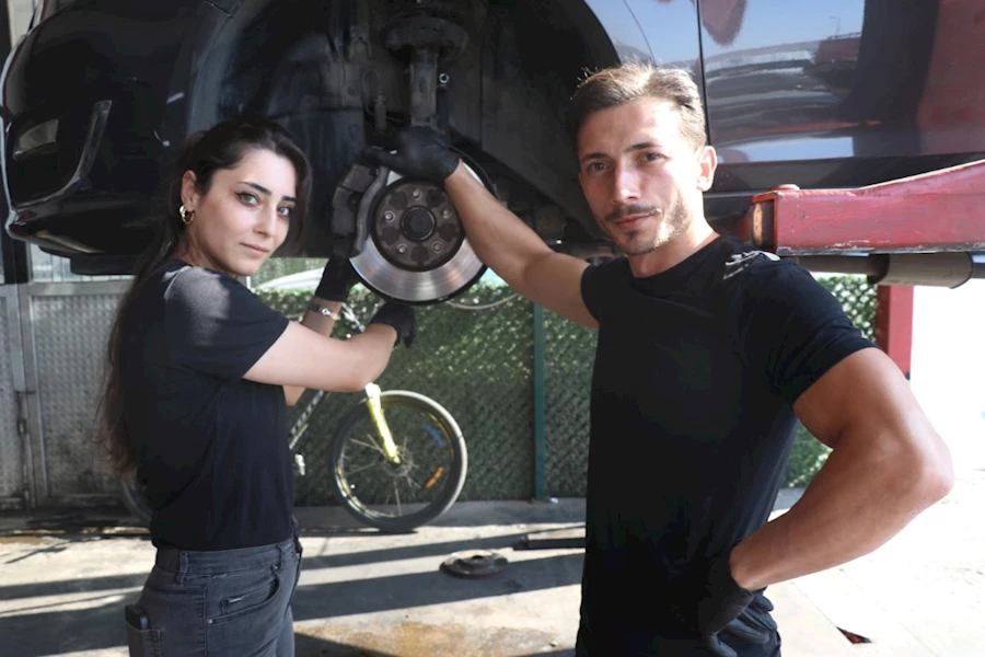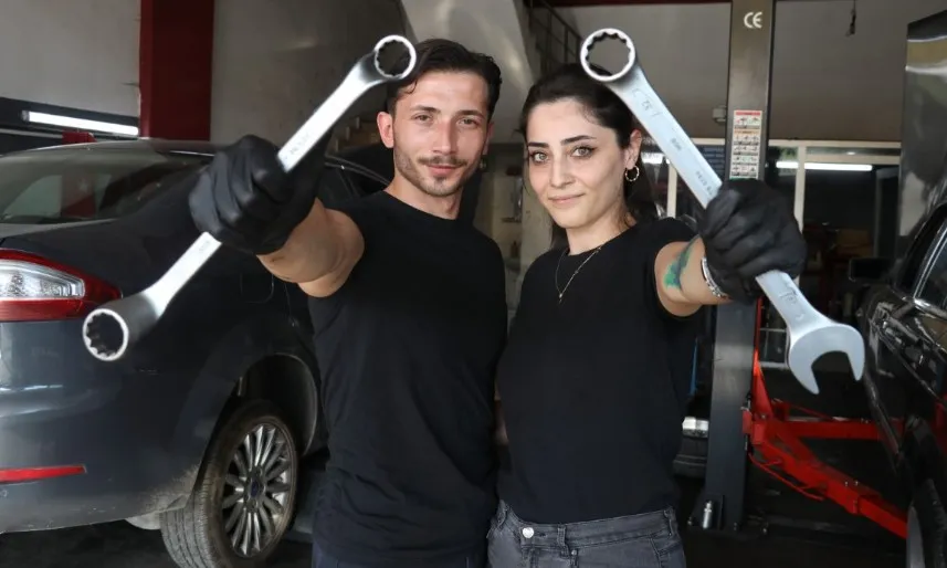 Sümeyra Yıldırım, eşi olmadığı zaman müşterilerle ilgilendiğini söyleyerek, "Eşim biraz dağınık ve kirli çalışıyor, onu ben düzeltiyorum. Bu sektör ağır bir iş olduğu için terleyebiliyoruz, yorulabiliyoruz. Gözüme yağ veya antifriz kaçtığında hemen eşim yardımcı oluyor. Aslında bir yandan güzel bir durum. Önce şaşırıyorlar ve tuhaf karşılıyorlar. Bir kadının sanayide ne işi var yapabilir mi gibi düşünceleri oluyor. Beni görünce de o algı yıkılıyor. İsteyen bir kadın bu işi yapabilir. Artık müşterilerimiz de bize alıştı, eşim olmadığı zaman ben ilgileniyorum. Eşimle aynı iş yerinde çalışmak güzel bir duygu. Bizim için ev ayrı, iş ayrıdır. İşteyken o benim ustamdır bana yardım eder. Yeri gelir ben ona ustalık yapar yardım ederim. Burada nasıl beraber hallediyorsak evde de birbirimize yardımcı oluyoruz" diye konuştu.