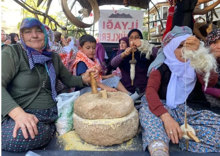 Kortejde Yörük dernekleri ve mahalle sakinleri tarafından günler öncesinden hazırlanan at, deve, eşek, köpek ve traktörlerle canlandırılan göç sahnelendi. Traktörler üzerinde Yörüklerin asırlardır kullandığı eşyalar sergilenirken, kadınlar bir yanda sacda gözleme pişirdi, bir yanda taşta buğday dövdü, teker eğerdi. Yörük göçü davul zurna eşliğinde ilerlerken seyirciler sık sık alkışlarla korteje eşlik etti.