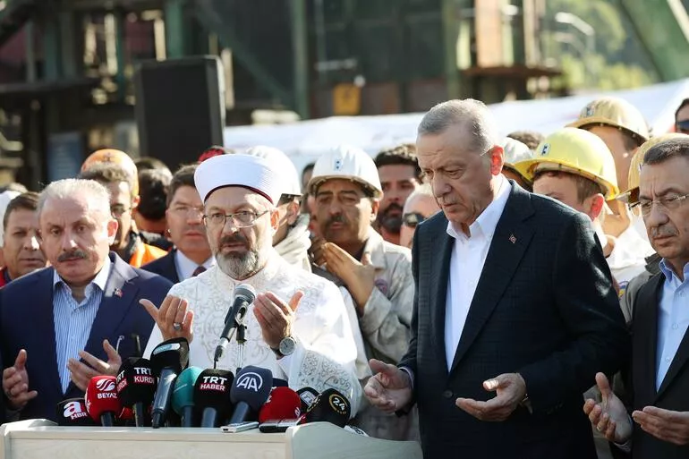 Türkiye dün akşam saatlerinde Amasra'da madende meydana gelen ve 40 işçinin yaşamını yitirmesine yol açan patlamanın acısını yaşıyor. Kahreden olayın yaşandığı bölgedeki ziyaretinde Cumhurbaşkanı Recep Tayyip Erdoğan'a TBMM Başkanı Mustafa Şentop ve Cumhurbaşkanı Yardımcısı Fuat Oktay eşlik etti. Erdoğan incelemelerinin ardından olayla ilgili açıklamalarda bulundu.
