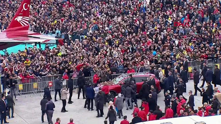 Cumhurbaşkanı Erdoğan, alana Azerbaycan Cumhurbaşkanı İlham Aliyev'in kullandığı Anadolu kırmızısı TOGG ile geldi. Araçta Cumhurbaşkanı Erdoğan'ın eşi Emine Erdoğan ve İlham Aliyev'in eşi Mihriban Aliyev de yer aldı. Öğrenciler, Cumhurbaşkanı Erdoğan'ı karanfillerle selamladı. Liderler ve eşlerinin alana gelişi Bayraktar Akıncı'nın kamerasına da yansıdı.