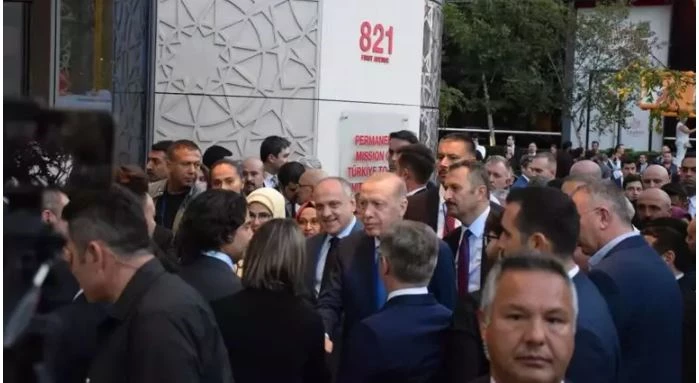 Cumhurbaşkanı Recep Tayyip Erdoğan, Birleşmiş Milletler (BM) 79. Genel Kurulu'na katılmak ve çeşitli temaslarda bulunmak üzere geldiği ABD'nin New York şehrindeki Türkevi girişinde sevgi gösterileriyle karşılandı.
