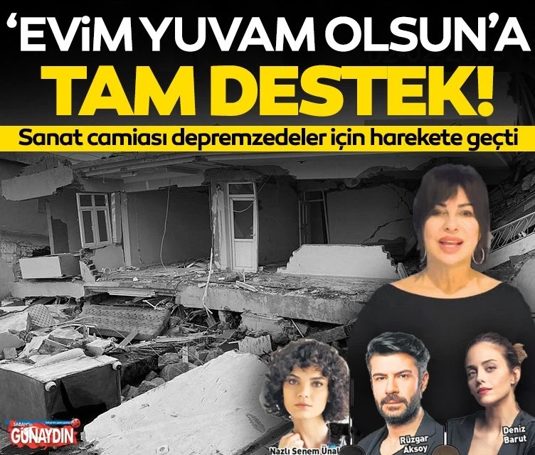 Sanat dünyası asrın felaketinin ardından Evim Yuvan Olsun projesi için harekete geçti. Kuruluş Osman oyuncuları Burak Özçivit, Yıldız Çağrı Atiksoy, Özge Törer, Rüzgar Aksoy ve Deniz Barut kampanyaya destek istedi. Seda Sayan, Erkan Petekkaya, Nilgün Belgün, Nazlı Senem Ünal gibi isimler de 'Depremzedelerin sıcak bir yuvaya ihtiyacı var. Siz de bu dayanışmaya destek olun bir hayata dokunun' diye çağrıda bulundu.