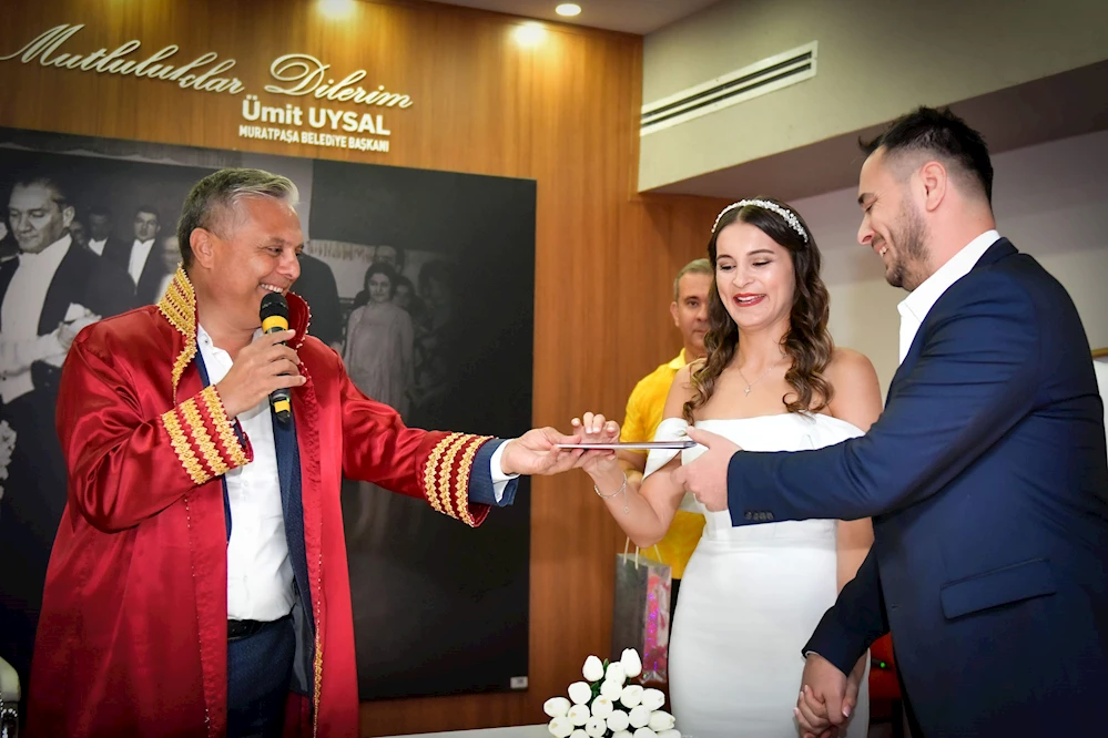 Belediye nikah salonunda gerçekleşen törende genç çiftin aileleri Sıdıka ve Kamil Polat, Gülsüm ve Mevlut Şahin’in yanı sıra mesai arkadaşları ve yakınları katıldı. Çiftin şahitlerini ise yakın arkadaşları yaptı. Genç çift, Başkan Uysal’ın uzattığı evlilik cüzdanı birlikte alırken gelin Çiğdem Polat Şahin, damadın ayağına basmayı da ihmal etmedi. Başkan Uysal, çifte kahve fincanı takımı hediye etti, ömür boyu mutluluklar diledi. /VARIŞ HABER