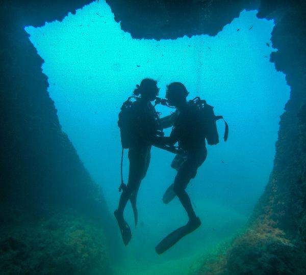 Antalya'da, oluşumu milyonlarca yıl önceye dayanan, 12 kilometre uzunluğunda, yer yer 40 metre yüksekliğindeki falezlerin su altında kalan bölümüne dalış yapan tatilciler, mağara girişleri ve kayalıkları görme imkanı yakalıyor. Lara bölgesinde falezlerin 10 metre altında başlayan, girişi kalp şeklindeki mağaranın içinde hava koridoru bulunuyor. Kimileri tüple dalış yaparken, profesyoneller serbest dalış yaparak kalp girişinden geçip, hava koridoruna geliyor. Burada nefeslenen dalgıçlar, ardından dışarı çıkıyor. Bölgede turistik dalış yaptıran dalış okullarının profesyonel su altı rehberleri, mağarayı 'aşk mağarası' olarak adlandırıyor. Kalp şeklindeki girişinin önüne çiftleri daldıran ve burada fotoğraf çekerek, su altının güzelliğini ölümsüzleştiren dalgıçlar, hava şartları el verdiği her zaman 'aşk mağarası'na dalış yapılabileceğini belirtti.