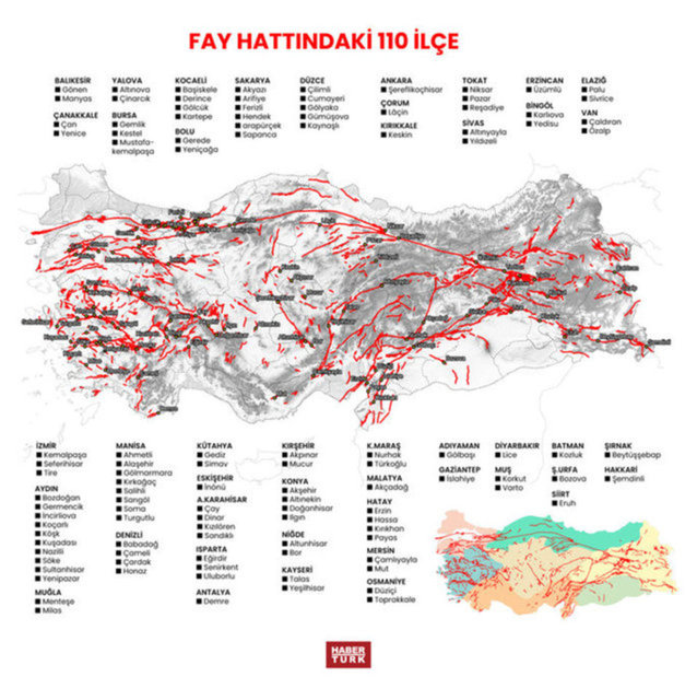 Türkiye Deprem Haritasına göre deprem riskinin en az olduğu dördüncü ve beşinci grupta yer alan iller ise Sinop, Giresun, Trabzon, Rize, Artvin, Kırklareli, Ankara, Edirne, Adana, Nevşehir, Niğde, Aksaray, Konya ve Karaman’dır. /HABERTÜRK