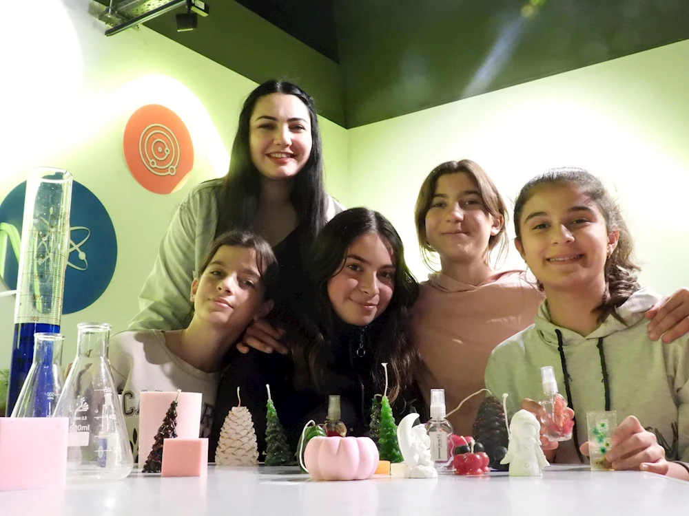 Antalya Bilim Merkezi’nin fen bilimleri atölyesini gelen öğrenciler, ebeveynlerine ya da arkadaşlarına özel parfüm, kolonya, kokulu mumlar, dezenfektan ya da sabun üretip hediye ediyor. Dokuma Park bünyesindeki merkezdeki 7 atölyeden biri olan Fen Bilimleri Atölyesi’ni tercih eden çocuklar, kimyasal maddeleri birbiriyle etkileşime sokarak yeni madde oluşturmayı kozmetik ürünlerle öğreniyor.