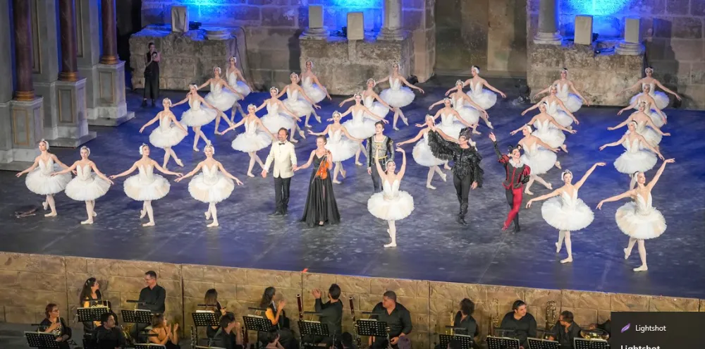 Tarihi Aspendos Antik Tiyatrosu'nu sanatseverlerle dolduran Kuğu Gölü balesi, zarafetin ve aşkın büyülü anlatımıyla unutulmaz bir geceye imza attı. Binlerce yıllık taşların arasında yankılanan Tchaikovsky ezgileri, izleyicileri büyüleyici bir yolculuğa çıkardı.