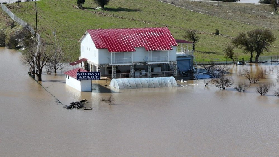 Fethiye-Antalya kara yolunda su baskını nedeniyle ulaşım kontrollü olarak sağlanırken, bölge havadan görüntülendi.