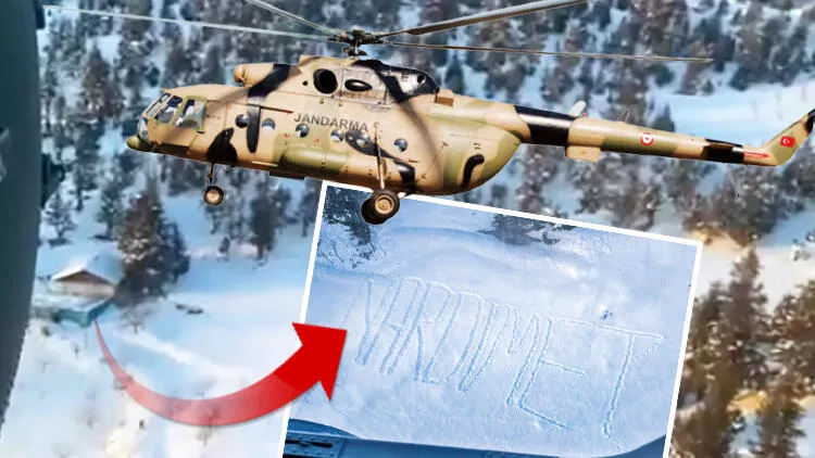 “Hava koşulları nedeniyle kırsal alanlara ulaşmak çok zordu. Risk alarak kırsal alanlara yardım ulaştırıyorduk. Kırsal alandan bir dönüşümde karın üzerine büyük harflerle ‘YARDIMET’ yazısını gördüm. Etrafta kimse yoktu, tekrar geri dönüp alçak uçuş yaptım. Yazının biraz ilerisinde vadide 1-2 ev vardı, ateş yakıp dumanla da bize işaret veriyorlardı. Biraz daha yaklaşınca yaşlı bir amca elinde Türk bayrağı şeklinde bir flama sallıyordu.