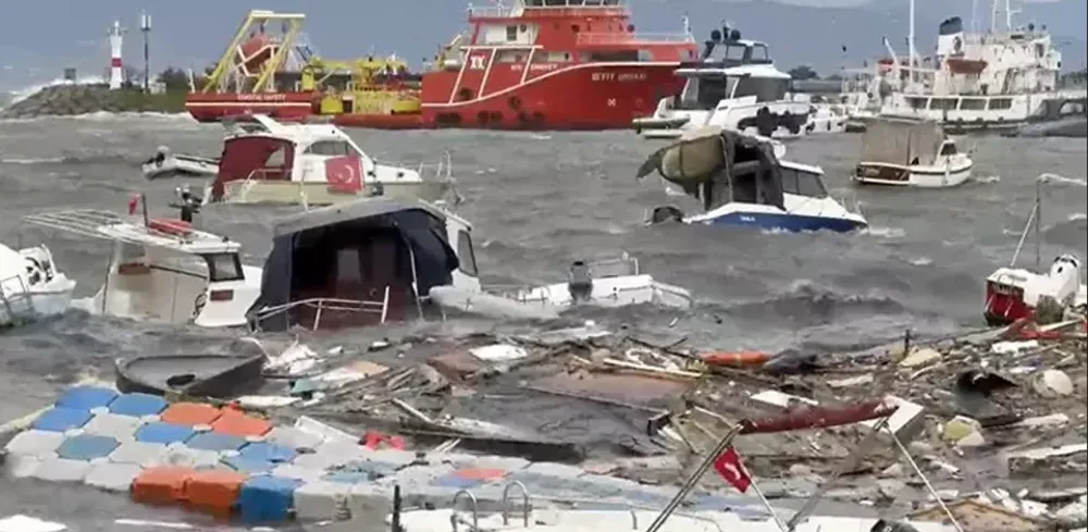 Çevrede bulunan vatandaşlar tarafından cep telefonuyla kaydedilen görüntülerinde, deniz suyunun zaman zaman sahil yoluna vurduğu; teknelerin dalgalar arasında sallandığı ve bazılarının kıyı boyunca sürüklenmekten son anda kurtulduğu anlar yer aldı.