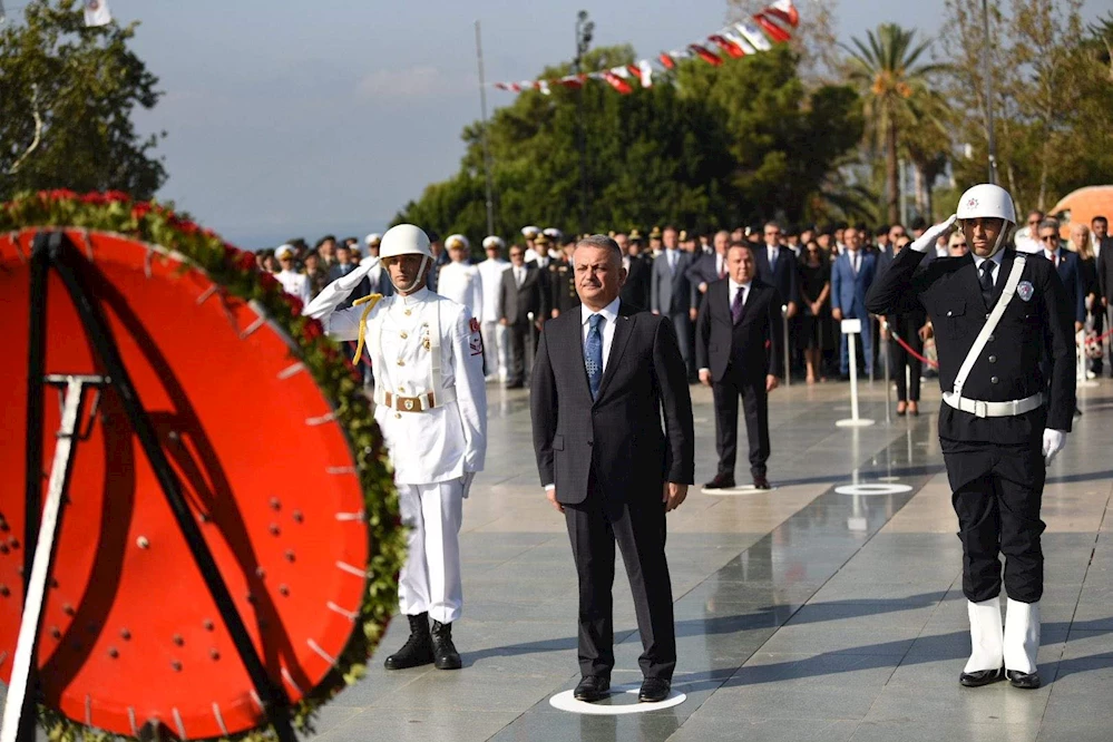 Çelenk Sunma Töreni’yle başlayan kutlamalarda Vali Ersin Yazıcı, Büyükşehir Belediye Başkanı Muhittin Böcek ve Türkiye Muharip Gaziler Derneği Antalya Şube Başkanı emekli Albay Zeynel Abidin Sezer Cumhuriyet Meydanı’nda bulunan Atatürk Anıtı’na çelenk sundu.