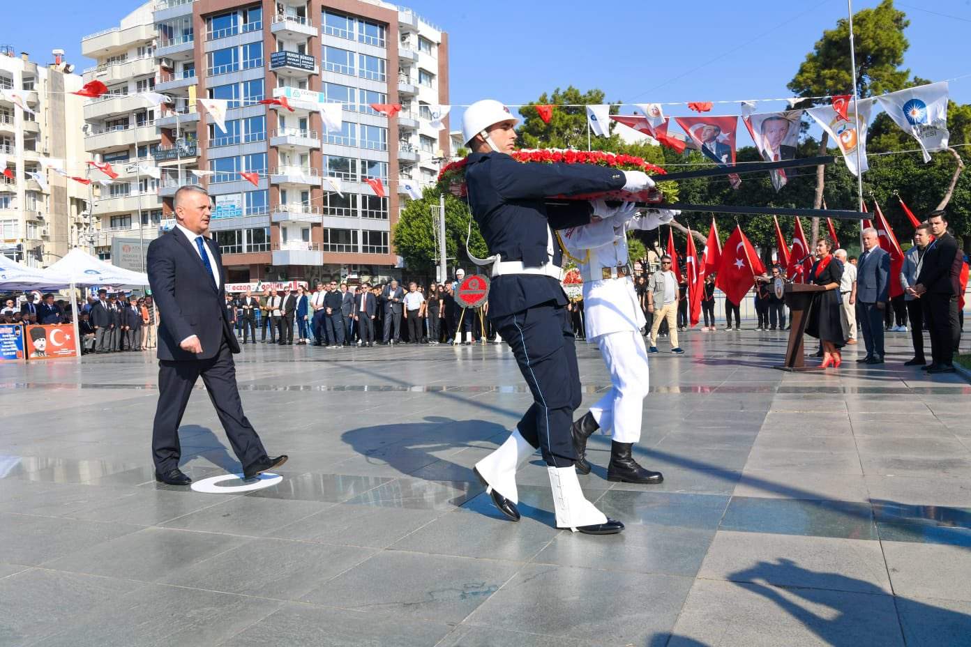 Törene Vali Ersin Yazıcı, Antalya Milletvekili Tuba Vural Çokal, Antalya Büyükşehir Belediye Başkanı Muhittin Böcek, Cumhuriyet Başsavcı Zafer Koç, Akdeniz Üniversitesi Rektörü Özlenen Özkan, Vali Yardımcısı Yalçın Sezgin, Hudut Kapıları Mülki İdare Amiri Suat Seyitoğlu, Konyaaltı Kaymakamı Kâmil Köten, Muratpaşa Kaymakamı Dr. Orhan Burhan, Döşemealtı Kaymakamı Nuri Özder, İl Jandarma Komutanı Tuğgeneral Tarık Hekimoğlu, İl Emniyet Müdürü Orhan Çevik, Sahil Güvenlik Antalya Grup Komutanı SG. Albay Murat Sezgin, Türkiye Muharip Gaziler Derneği Antalya Şube Başkanı emekli Albay Zeynel Abidin Sezer, Kurum Müdürleri, gaziler, şehit aileleri ve vatandaş katıldı.