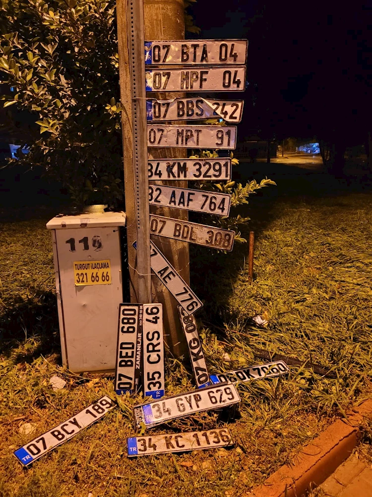 Bu plakalar Güllük’ten Opera Kavşağı’na gelmeden önceki kavşakta sahiplerini bekliyor. Bazı plakalar ise Yeni Doğan Mahallesi’ndeki Pazar yerine yakın bir yerde bulunuyor. /MİLLİYET.COM.TR