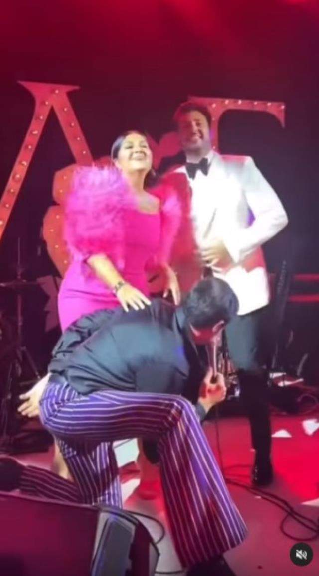 Düğünde sahneye çıkan müzisyenin Rock and Roll şarkısı eşliğinde çılgınlar gibi dans eden ünlü sanatçı, oğlu ve şarkıyı söyleyen şarkıcı ile dans etti. Sosyal medya kullanıcıları şarkıcı için 'Kayınvalide gelini gölgede bıraktı' tarzında yorumlar yaptı. /HABERLER.COM