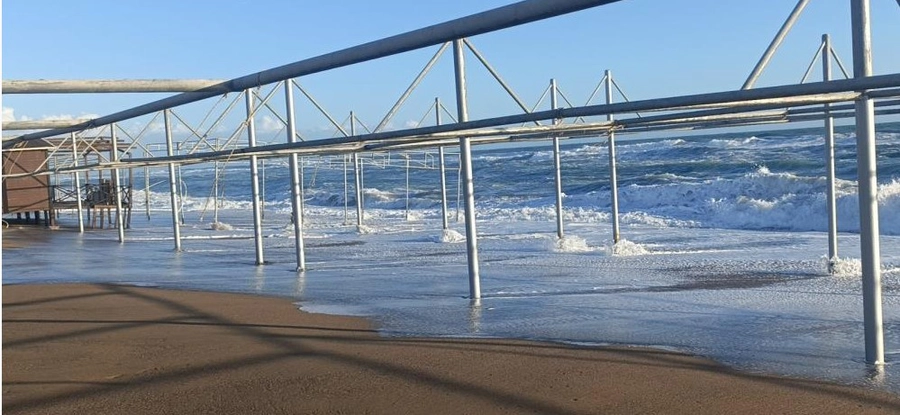 Antalya'nın Manavgat ilçesinde şiddetli fırtınanın sebep olduğu dev dalgalar Titreyengöl'de saat kulesinin bulunduğu bölgenin göle dönmesine ve Titreyengöl'ün denizle birleşmesine neden oldu.