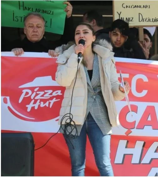 Ülkenin dört bir yanında KFC ve Pizza Hut çalışanı 6 bin işçisinin haklarını savunmak amacıyla bir araya geldiklerini belirten Ulus, “KFC ve Pizza Hut emekçileri olarak 35 yıldır halkımıza hizmet vermekteyiz. Bizlere aldığımız her eğitimden önce insan kavramı öğretilmiştir. Müşterilerimize ve çalışanlarımıza değer vermek her zaman birinci öncelik olarak önümüze konulmuştur. Bu değerler İş Gıda A.Ş.’ye devrolana kadar korunmuş ve çalışanlara hissettirilmiştir. KFC ve Pizza HUT restoranları İş Gıda A.Ş.’ye devrolduktan sonra maaşlarımız azalmış, yan haklarımız yok sayılmıştır. Restoranlarımızda 2 Ağustos 2023 tarihinden sonra ciddi şekilde tedarik sıkıntıları yaşanmaya başlanmış, fakat bu sorunlara rağmen restoran açılışlarına hız kesmeden devam edilmiştir” dedi.