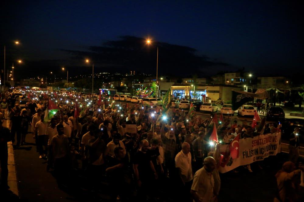 Antalya'da yaklaşık 3 bin kişi, geçtiğimiz günlerde İran'da düzenlenen suikast sonucu öldürülen Hamas Siyasi Büro Lideri İsmail Heniyye'nin son çağrısı olan 3 Ağustos Cumartesi günü için tüm Arap, İslam ve dünya ülkelerini Gazze halkına destek olmak adına meydanlara inme çağrısını yerine getirmek için toplandı. 75 STK'nın oluşturduğu Antalya Kudüs Platformu'nun çağrısı ile akşam namazında Çelebi Sultan Mehmet Camii'nde toplanan vatandaşlar, Gazze'nin sesi olmak için yürüdü. Binlerce kişi, ‘Antalya'dan Kudüs'e direnişe bin selam' ve ‘Katil İsrail Filistin'den defol' sloganları attı.
