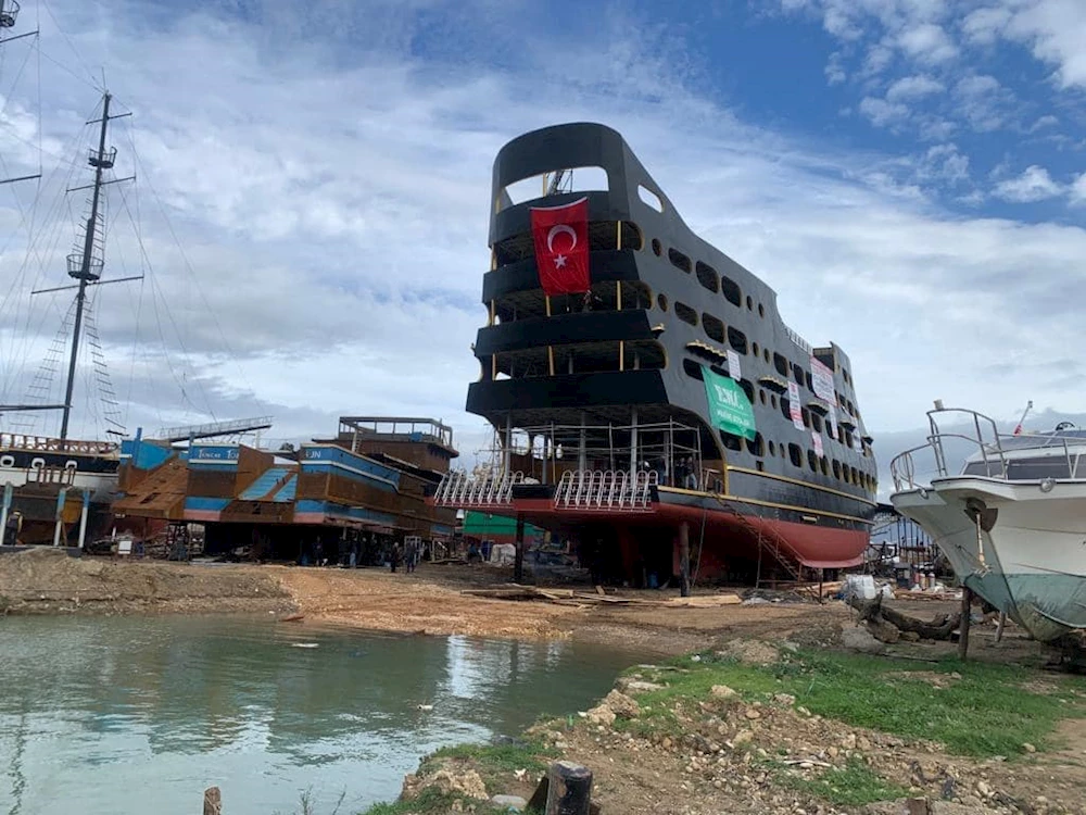 Manavgat tersaneler bölgesinde turizm amaçlı inşa edilen teknede 50 personel çalışacak. 1000 ton çelik kullanılarak yapılan tekne suya indirildiğinde deplasmanlı ağırlığı 1400 ton olacak.