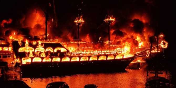 Bakan Çavuşoğlu’nun amcasının oğlu olan Hasan Çavuşoğlu’a ait bir başka tekne ise 2 yıl önce yapım aşamasında yanmıştı. Onun yerine yapılan 1163 yolcu kapasiteli tekne 5 katlı ve her katta 1000 metrekarelik kullanım alanı var.