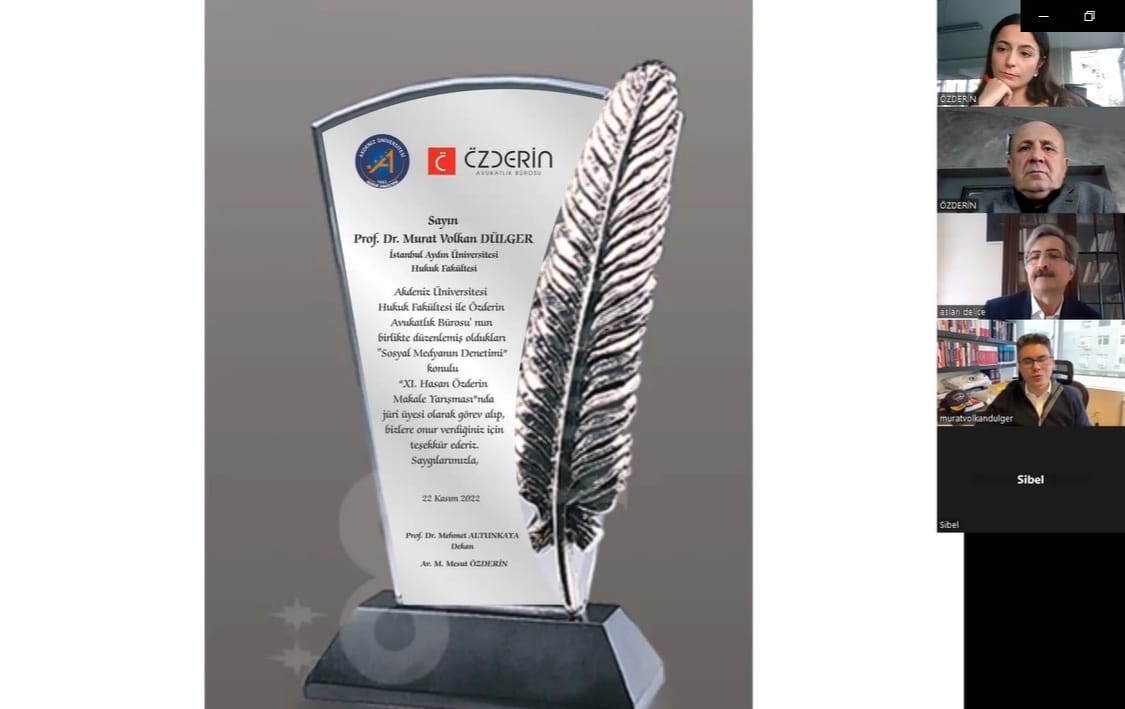 Özderin Avukatlık Bürosu'nun Akdeniz Üniversitesi Hukuk Fakültesi iş birliğiyle bu yıl 11’incisini düzenlediği ve Avukat Mesut Özderin'in babasının adını alan Hasan Özderin Makale Yarışması ödül töreni dijital ortamda yapıldı.