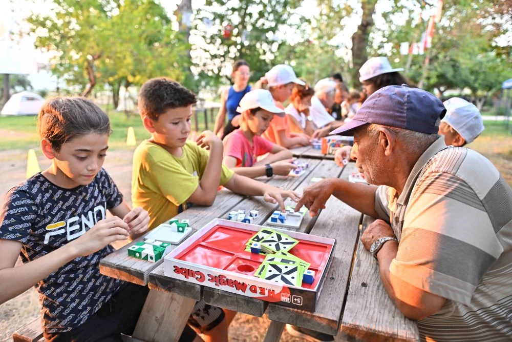 Antalya’da Muratpaşa Belediyesi’nin çocukları ekran başından kaldıran, cep telefonun bir kenara bıraktıran doğa kampında, iki kuşak kıyasıya yarıştı. Yaşları 10 ile 15 arasında değişen çocuklarla belediyenin yaşlı evleri üyesi kıdemli kent sakinleri, zeka oyunları oynadı, parkurlarda rakip oldu.