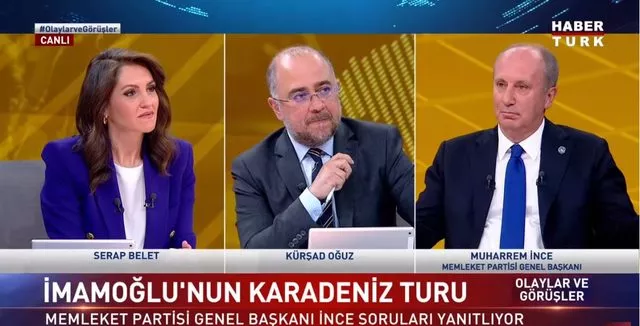 Memleket Partisi Genel Başkanı Muharrem İnce Habertürk'te yayınlanan Olaylar ve Görüşler programında gündeme dair açıklamalarda bulundu. Serap Belet ve Kürşad Oğuz'un sorularını canlı yayında yanıtlayan İnce, İstanbul ve Ankara Büyükşehir belediyelerindeki yönetimi eleştirdi.