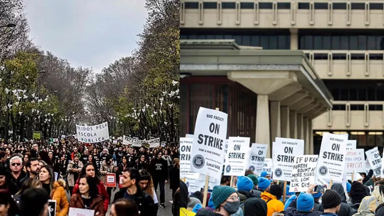 Portekiz'de de ülkenin dört bir yanından gelen öğretmenler Başkent Lizbon'da toplandılar ve yaklaşık bir haftadır süren iş bırakma eylemlerinin ardından gösteri düzenlediler.