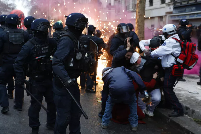 Göstericilerin bazıları Paris'teki Bastille Meydanı'nda polisle çatıştı. Eylemciler güvenlik güçlerine şişe, çöp kutusu ve sis bombası atarken polis göz yaşartıcı gaz ile karşılık verdi.