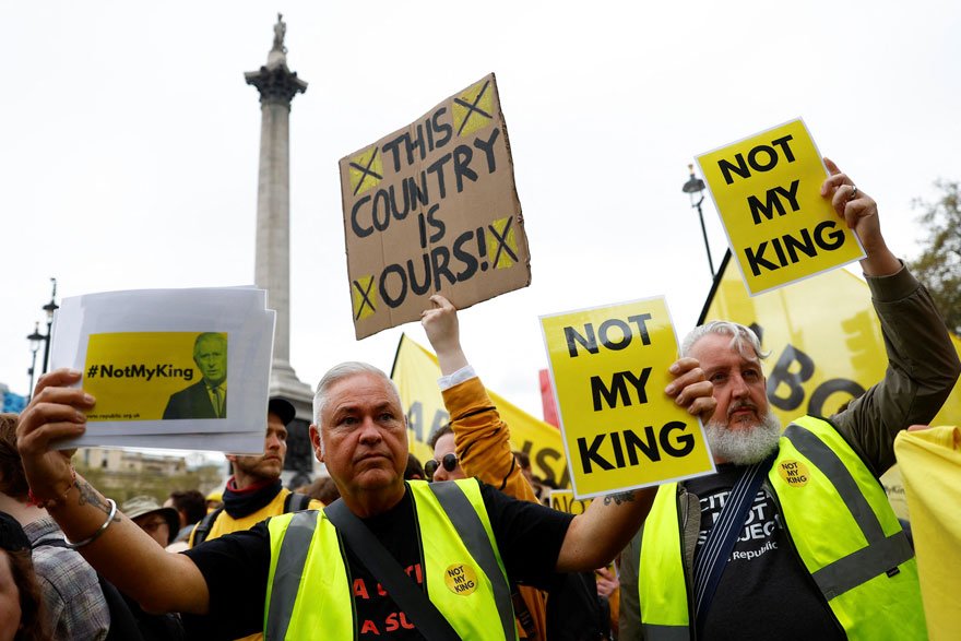 Monarşi karşıtları da töreni izliyor. Bu arada tören öncesi monarşi karşıtı Cumhuriyet grubunun lideri Graham Smith’in gözaltına alındığı bildirildi.