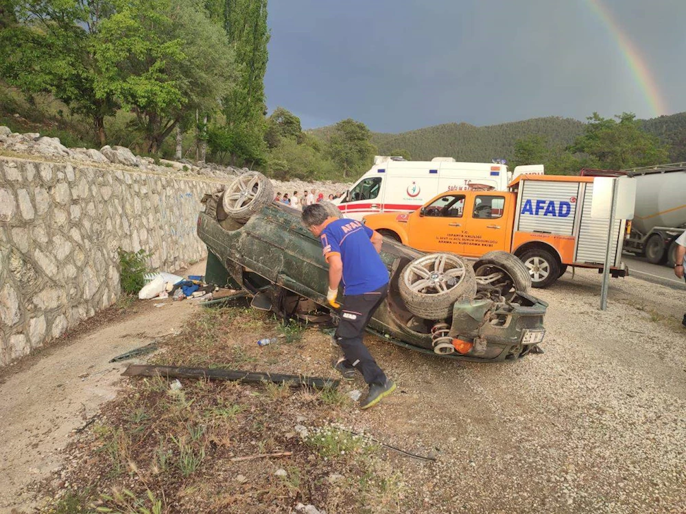 Sürücü Türk ile otomobilde bulunan Beyza Nur Yarar ve Tuğba Gökkaya yaralandı. Yaralılar, Isparta Şehir Hastanesi'nde tedaviye alındı. /HABERLER.COM