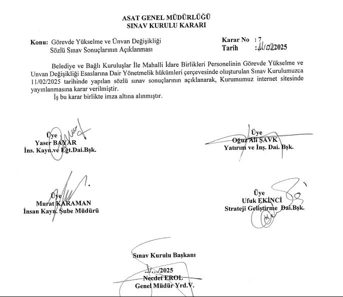 Büyükşehir Belediyesi’ne bağlı ASAT’ta görevde yükselme sınavı sonuçları tartışmalara neden oldu. Sınava katılan Büyükşehir Belediye Başkanı Muhittin Böcek’in yeğeni olduğu öne sürülen Muhittin Eser Karakuş yazılıda 81,67 puan alırken sözlüde 79,8 puan alarak Şube Müdürü yapıldı. Aynı sınavda yazılıda yüksek puan alan birçok adaya sözlü sınavda verilen puanların büyük ölçüde düşürüldüğü dikkati çekerken İşletmeler Şube Müdürü olmak için sınava giren Y.G’nin yazılıda 65 puan alırken sözlüde ‘0’ puan verildiği görülüyor. Danıştay, daha önce KPSS’den yüksek puan alan Öğretmen adayının, sözlü sınavında sıfır puan verilmesine karşı açtığı davada, sıfır puan verilmesinin hayatın olağan akışına aykırı olduğuna hükmederek iptal kararını onamıştı. Antalya Su ve Atık Su İdaresi Genel Müdürlüğü (ASAT), 6 Şubat tarihinde yapılan ve kurum personelinin katıldığı Görevde Yükselme ve Unvan Değişikliği sınavıyla ilgili sonuçları resmi internet sitesinden duyurdu. Çevre, Şehircilik ve İklim Değişikliği Bakanlığı Yerel Yönetimler Genel Müdürlüğü’nün Anadolu Üniversitesi aracılığı ile 29 Eylül 2024 tarihinde Ankara dâhil 7 ilde yaptığı yazılı sınavda başarılı olan adaylar, ASAT’taki 14 şube müdürlüğü için 6 Şubat 2025 tarihinde sözlü sınava tabi tutuldu.