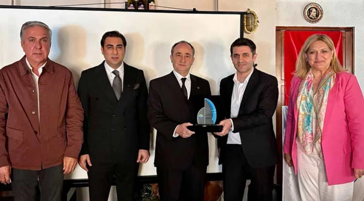 Ünlü’ye plaketi İstanbul TURMEPA’dan Hüseyin Yeşildağ takdim etti.