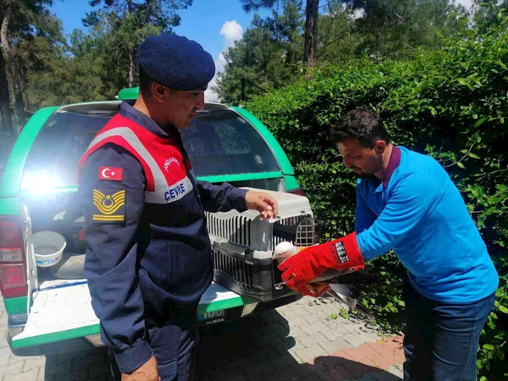 Antalya'nın Demre ilçesinde jandarma ekipleri, devriyeleri esnasında buldukları kör ve uçamaz halde olan martıyı veterinere götürüp tedavi ettirdi.