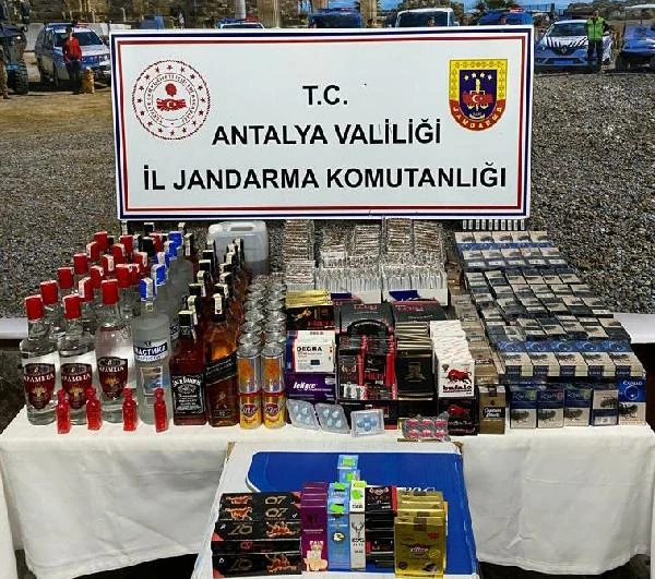 Antalya'da jandarma ekipleri kaçak alkol ve sigara satışının yapıldığı markete baskın düzenledi. Baskında 100 bin liralık kaçak malzeme ele geçirildi.