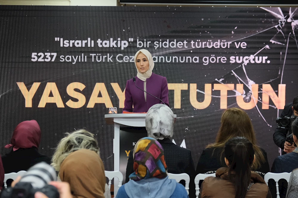 Kampanyanın ayrıntılarına da değinen Sümeyye Erdoğan Bayraktar, “Hazırladığımız kamu spotuyla ve sosyal medya içeriklerimizle ısrarlı takibin hak ihlali ve bir şiddet türü olduğuna dikkat çekmek, 5237 sayılı Türk Ceza Kanununa göre ısrarlı takibin suç kapsamına girdiğini kampanyamız vasıtasıyla herkese duyurmak istiyoruz. Çünkü özellikle son yıllarda kadınların gerek fiziksel gerekse telefon ve sosyal medya üzerinden ısrarlı takibe maruz kaldığını biliyoruz. Hangi yolla olursa olsun ısrarlı takip, kadını korkutan, tedirgin eden, baskı altına alan, huzur ve sükûnunu bozan ve güvenlik endişesi taşımasına yol açan bir eylemdir. Aynı zamanda her ısrarlı takibin, fiziksel şiddete dönüşme potansiyeli taşıdığını da göz ardı etmemek gerekir” dedi.