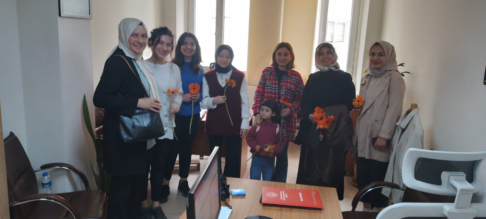 Çiçek dağıtımı sonrası KADEM Antalya Temsilcisi Zeynep Jane Kandur ve dernek üyeleri, Antalya Aile ve Sosyal Hizmetler İl Müdürü Galip Sökmen'i ile Kepez Sosyal Hizmet Merkezi Müdürü Efsun Şeker'i, İl Müdür Yardımcısı Filiz Terkanlıoğlu'nu ziyaret etti. Ziyaret kapsamında KADEM'in kadınlara yönelik çalışmaları hakkında bilgi veren Zeynep Jane Kandur, 'Aile ve Sosyal Hizmetler Bakanlığı'nın kadınlara yönelik çalışmalarını yakından takip ediyoruz ve takdir ediyoruz. Kadınlara hem sosyal hayatta hem de iş hayatında destekleyici çalışmalar yapmak istiyoruz. Kurumunuzla birlikte ortak çalışmalar yapmayı çok arzu ederiz' dedi.