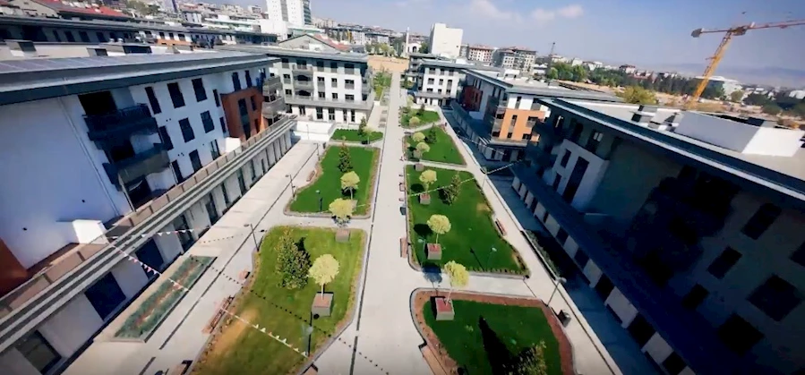 Videoda, 1183’ü konut, 1595’i iş yeri olmak üzere toplam 2 bin 778 bağımsız bölümün yapıldığı Azerbaycan Mahallesi ve o mahalledeki Haydar Aliyev İlkokulu’nda eğitim alan öğrenciler ile Ebrar Sitesi'nin görüntüleri yer alıyor. /TRTHABER