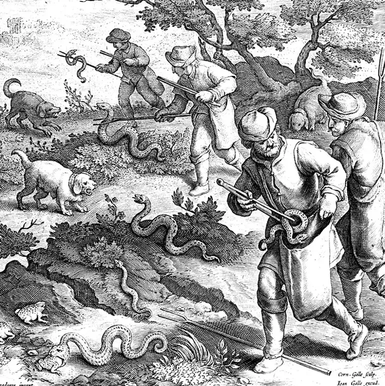 Ardından engerek eti sorunu baş gösterdi. Ekip üyeleri yılan avına çıkmak istemiyordu; zaten Polonya topraklarının sürüngenler açısından çok zengin olduğu da söylenemezdi. Ancak dağlık bölgelerde engerekler yaşıyordu. Bu nedenle Weglorz ülkeyi baştan başa arabayla kat etti. Doğal sebeplerle ya da araba ezmesi sonucu ölen engereklerin izini sürdü. Nihayet araştırmacılar yaklaşık 200 gram taze engerek eti bulmayı başardı. Bu et kurutulduktan sonra tiryak karışımına dahil edildi.