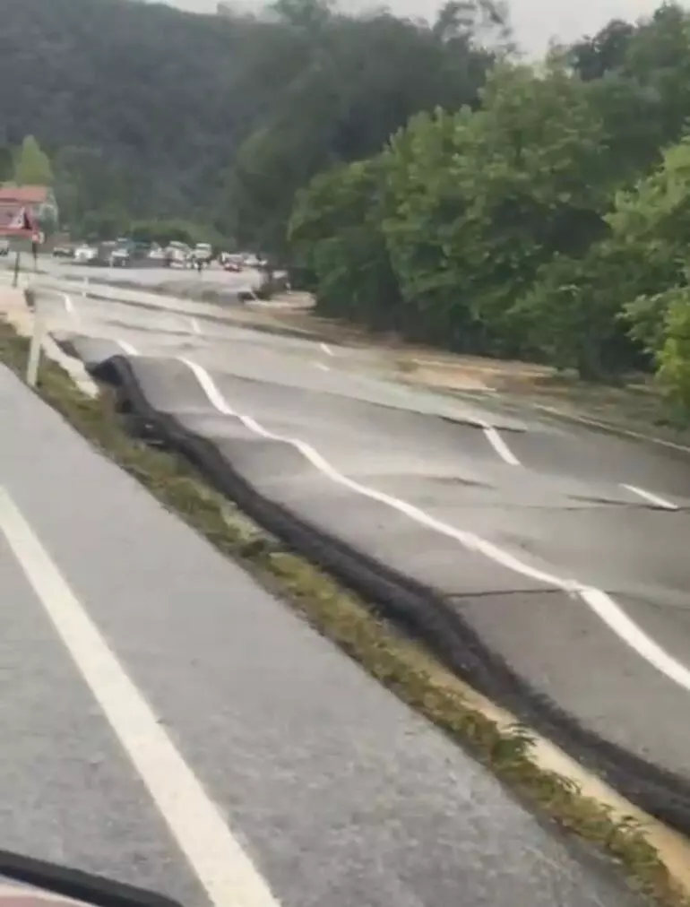 Gökçebey ilçesinde sağanak yağış sonrası karayolunda çöküntü ve yarıklar oluştu...