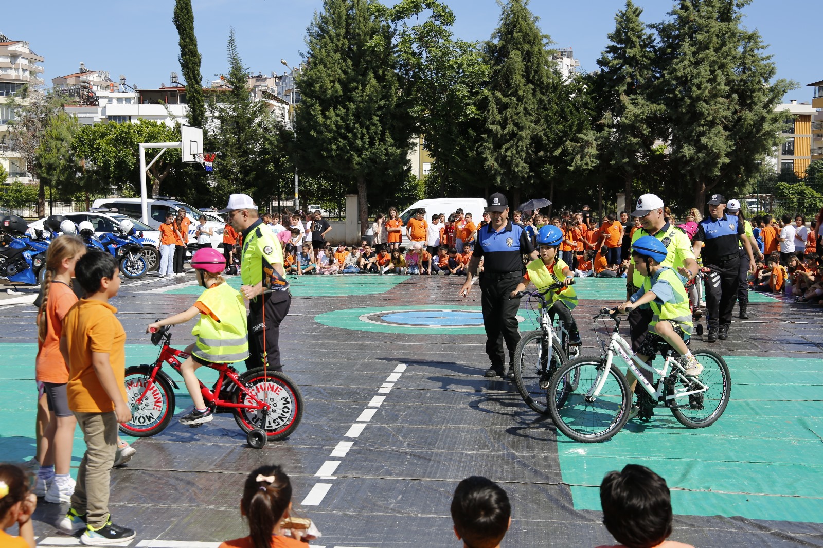 08 Mayıs 2024 günü Konyaaltı ilçesi Abdurrahman Neriman Bileydi İlkokulu/Ortaokulunda Emniyet Müdürlüğümüz ve İl Jandarma Komutanlığı görevlilerince gelecekte trafikte yolcu veya yaya olarak yer alacak çocuklarımızın, her durumda trafik kurallarına uygun davranan fertler olarak kendilerini yetiştirmeleri ve trafikteki farkındalıklarını artırmak amacıyla etkinlik düzenlendi.