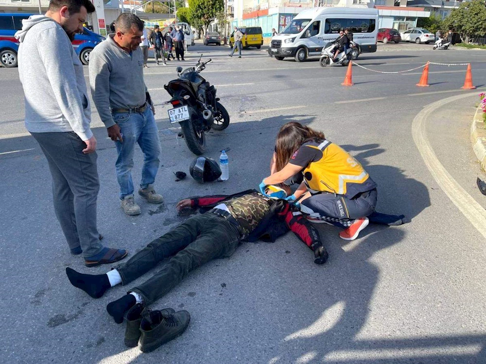 Edinilen bilgiye göre, Alanya istikametinden Antalya istikametine giden ve henüz ismi belirlenemeyen motosiklet sürücüsü, İncekum Mahallesi'nde tali yoldan D400 karayolunda kavşağa dikkatsiz giren S.D. idaresindeki kamyonete çarptı. Kazayı gören çevredeki vatandaşlar, koşarak yaralı motosiklet sürücüsünün yanına geldi. Vatandaşlar, durumu sağlık ekiplerine haber verdi. Kısa süre içerisinde olay yerine gelen ekipler, yaralıya ilk müdahaleyi yaptıktan sonra hastaneye kaldırdı. Ağır yaralı olan motosiklet sürücüsünün kaza anında ayağının kırıldığı öğrenildi.