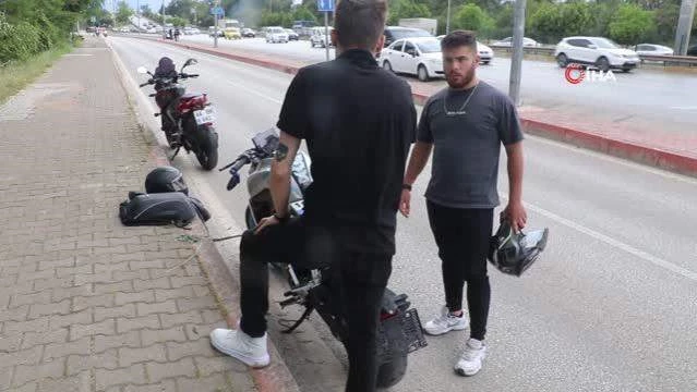 Antalya'da makas attığını ileri sürdüğü aracın çarpması sonucu yeni aldığı motosikletiyle kaza yapan genç, kolundan yaralandı. Gelen ambulansa binmeyip motosikletinin başından ayrılmayan genç, 'Hem okuyup hem çalışarak biriktirdiğim paralarla aldım. Uzun zamandır bu motosikleti almanın hayalini kuruyordum. Bırakamadım' dedi.