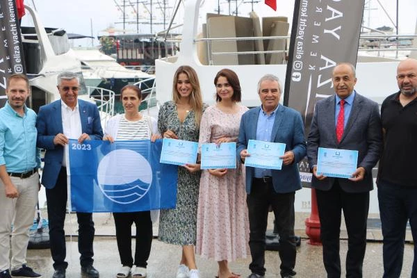 Antalya’nın Kemer ilçesindeki marina ve 4 turizm teknesine 2023 yılı mavi bayrakları törenle verildi.
