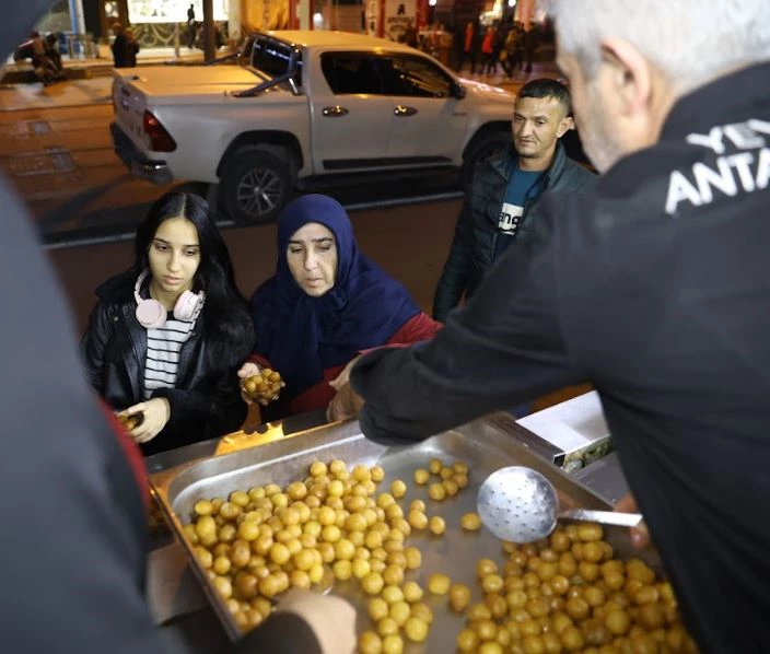 Antalya Büyükşehir Belediyesi, Regaip Kandili’nde 19 ilçede cami önlerinde kurduğu mobil stantlarda sıcak lokma dökülerek vatandaşlara ikram etti.