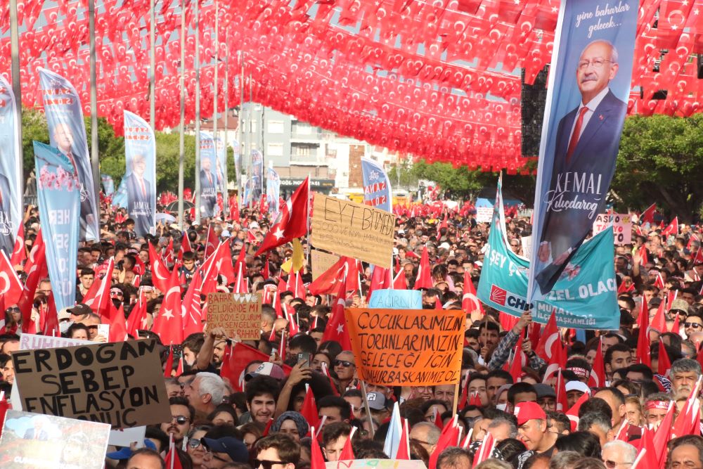 Kılıçdaroğlu, 'Birleşe birleşe kazanacağız, oylarımızı bölmeyeceğiz, bir araya geleceğiz sandığa gideceğiz, oyumuzu kullanacağız ve demokratik yöntemlerle bir otoriter rejimin sonuna noktayı koyacağız. Noktayı koyacak olan sizsiniz, hep beraber gideceğiz sandığa.' diye konuştu.