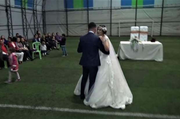 Antalya'da düğünlerinin açık havada yapılması için organizasyon şirketiyle anlaşan gelin-damat, yağmur yağınca hayallerini 2.5 saat gecikmeli olarak halı sahada gerçekleştirebildi. Yaşadıkları halı saha hüsranın ardından mahkeme yolunu tutan çift, 30 bin TL tazminat kazandı. Mağdur Berrin Pamukçu, 'Düğünümüz ciddi anlamda korkunçtu. Bizim gibi mağdur olanlar hakkını arasın, bizim davamız bir emsal olsun' dedi.
