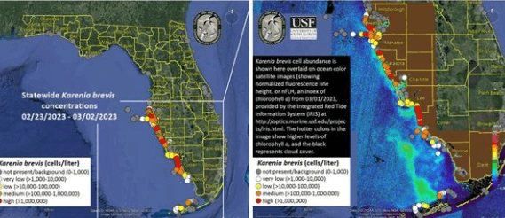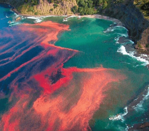 Karenia brevis olarak bilinen yüksek miktardaki zararlı algler, denizde yaşam süren hayvanları öldürebilir ve bazı insanlarda solunum yolu komplikasyonlarına neden olabilir. Aynı zamanda kükürtlü, çürüyen bir kokuya sahiptir.