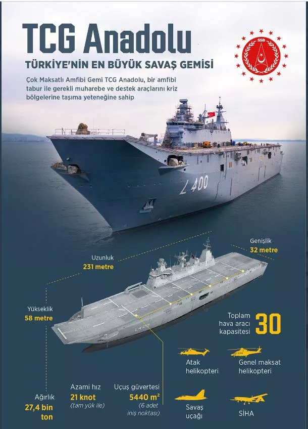 Dünyada bu ölçekte gemiye sahip olan 12 ülke bulunuyor. TCG Anadolu, Türk donanmasının gücüne güç katacak ve caydırıcılığını artıracak.