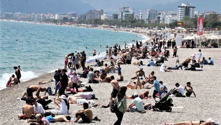 Turizmin başkenti Antalya’da bayram hareketliliği başladı. Ramazan Bayramı’nın 1’inci gününde kentte hava sıcaklığı 19 dereceye kadar çıkarken, nem oranıysa yüzde 51 olarak kayıtlara geçti. Havanın parçalı bulutlu olmasına rağmen vatandaşlar ve turistler Konyaaltı Sahili’ne gelerek denizin keyfini çıkardı. Bazı vatandaşlar sahilde piknik yapmayı tercih ederken, bazıları da seyir terası varyantlardan manzarayı fotoğrafladı. Birçok turist ise sıcak kumsalda güneşlenmeyi tercih etti, bazıları da kitap okudu. Gençler ise deniz içerisinde bulunan kayanın üzerinden zaman zaman atlama gerçekleştirerek tehlikeye davetiye çıkardı. Sahil Güvenlik Komutanlığına bağlı helikopterler de zaman zaman havadan kontrolleri gerçekleştirdi.