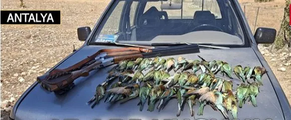 Antalya'nın Kaş ilçesinde Doğa Koruma ve Milli Parklar ekipleri, koruma altındaki 45 arı kuşunu tüfekle avlayan 2 kişiyi yakaladı VE avladıkları 45 arı kuşu için 67 bin 500 TL tazminat uyguladı.